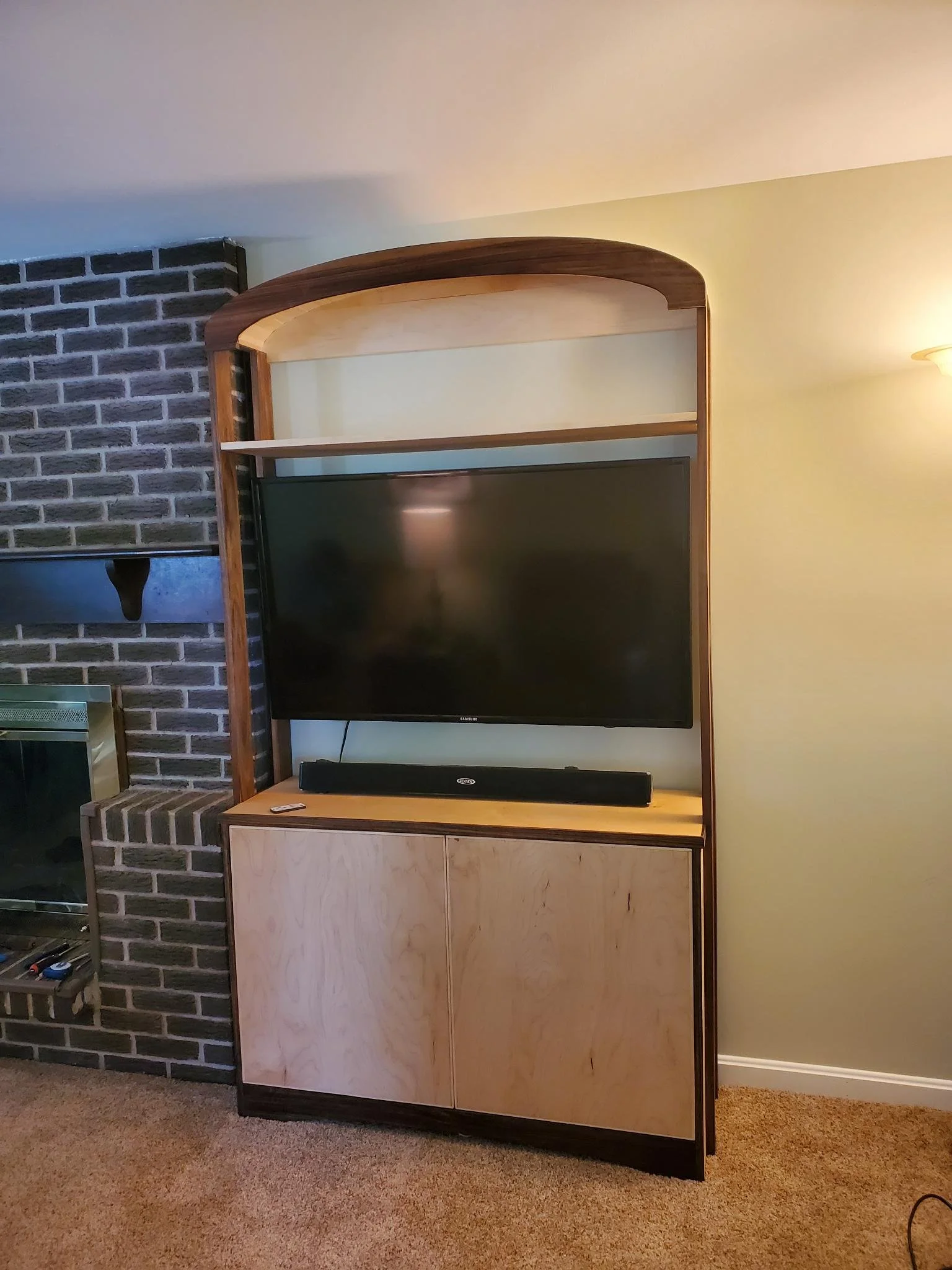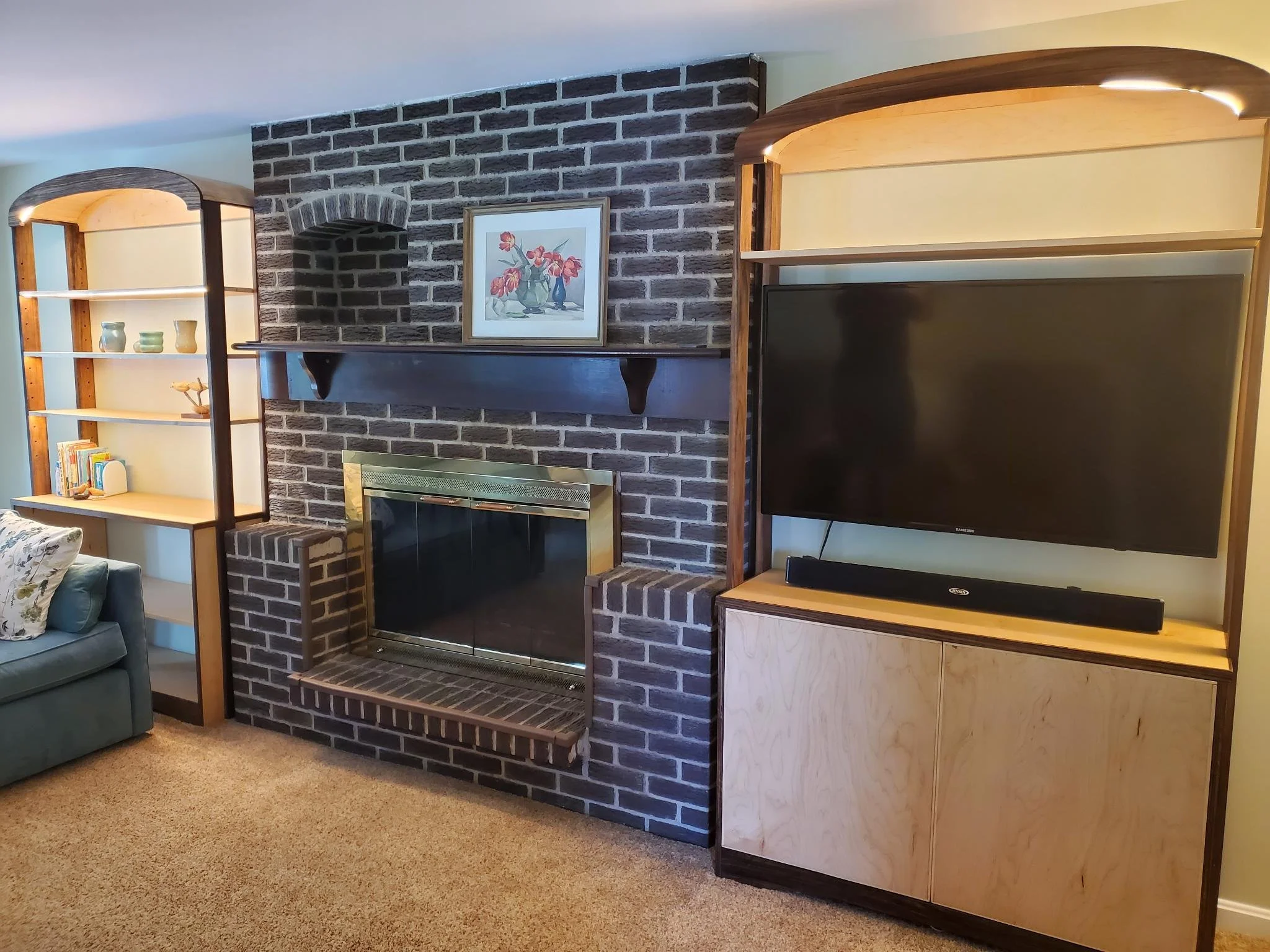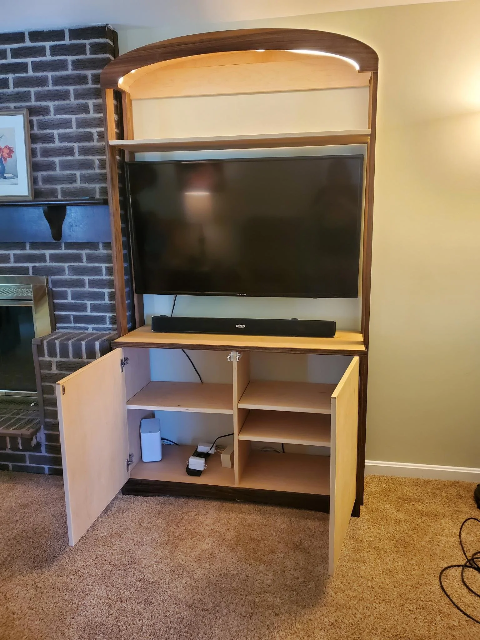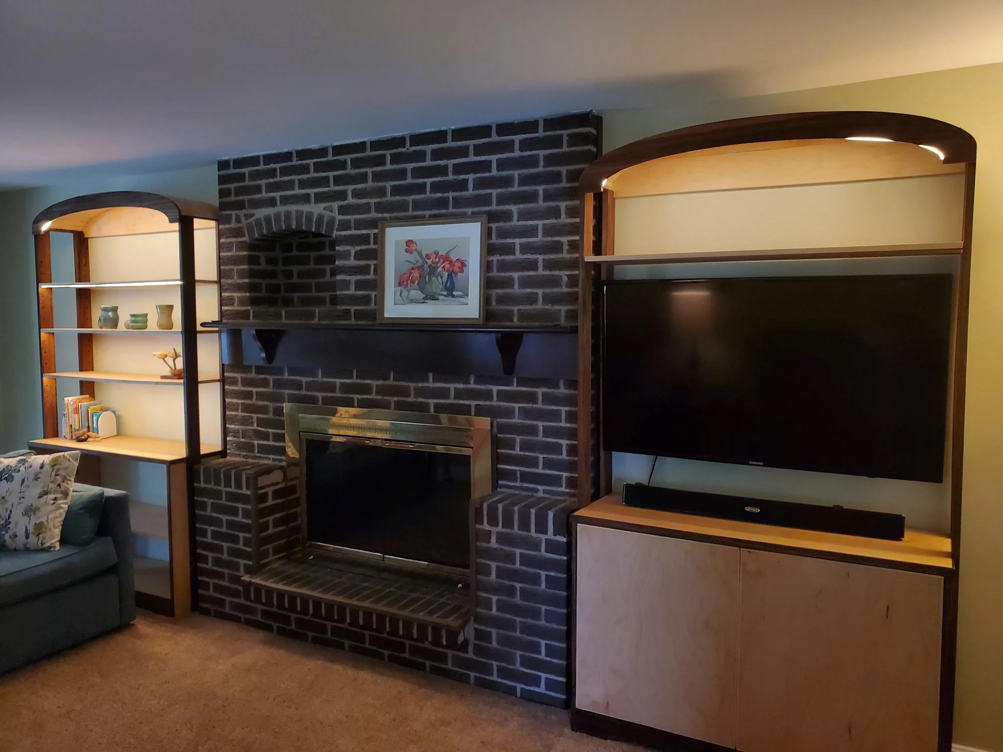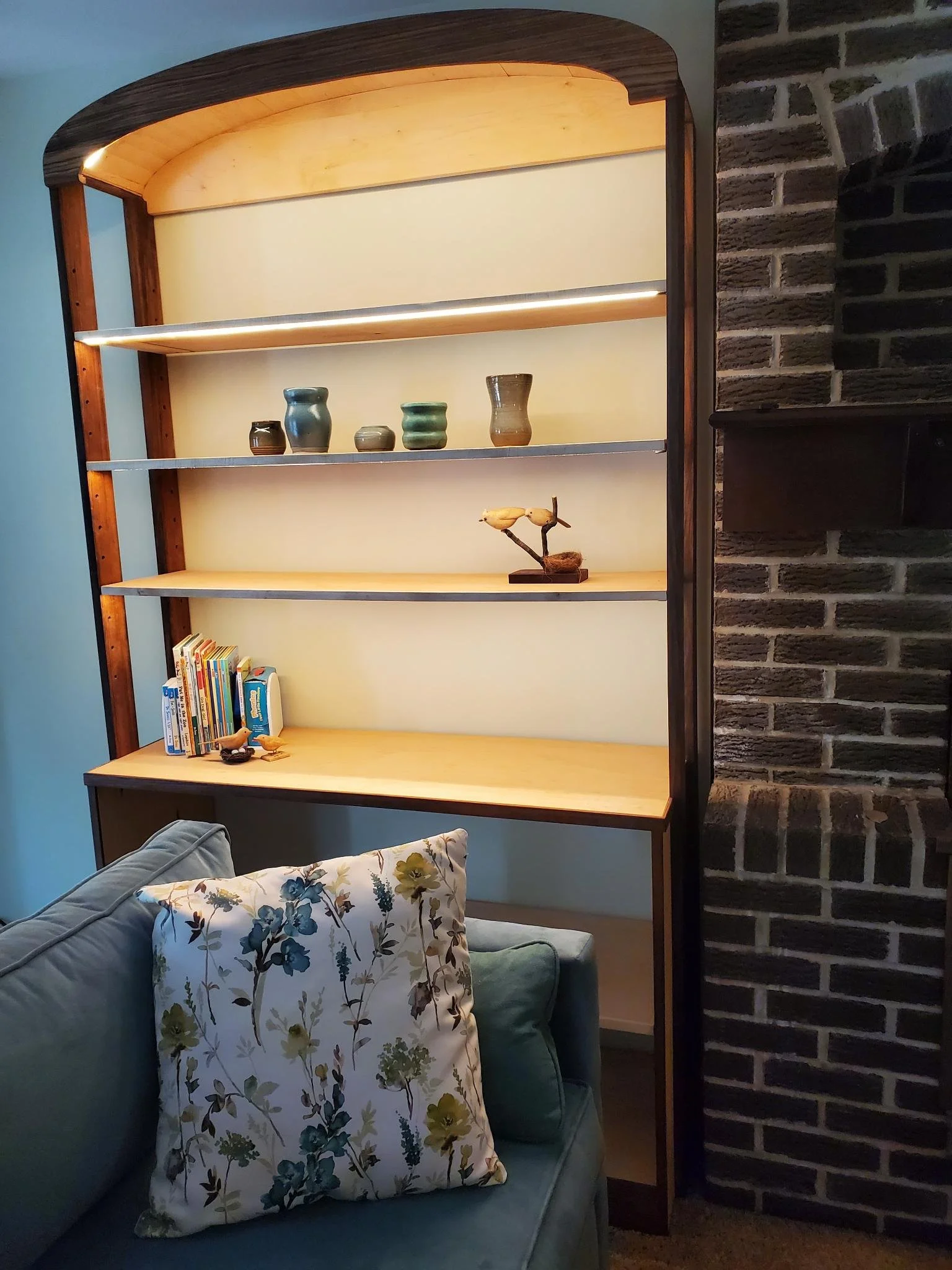 Custom display cabinets with adjustable shelving and LEDs in the shelves.